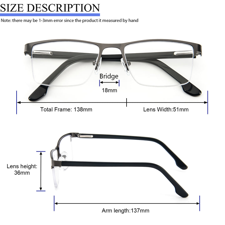 1pc Steel Half Frame Reading Glasses Suitable for Daily use