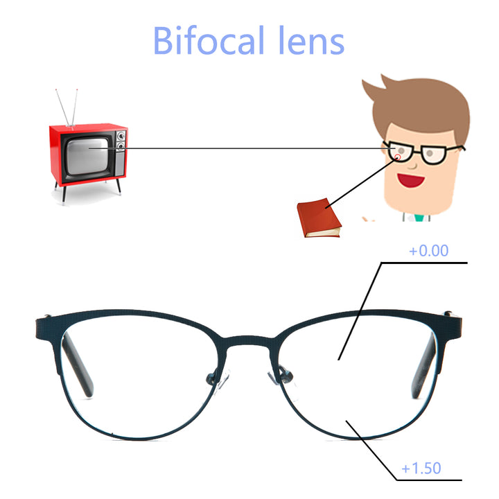 Bifocals Reading Glasses for Women Men Cat Eye Metal Frame Glasses