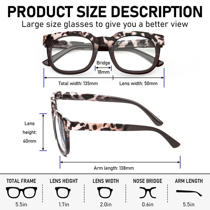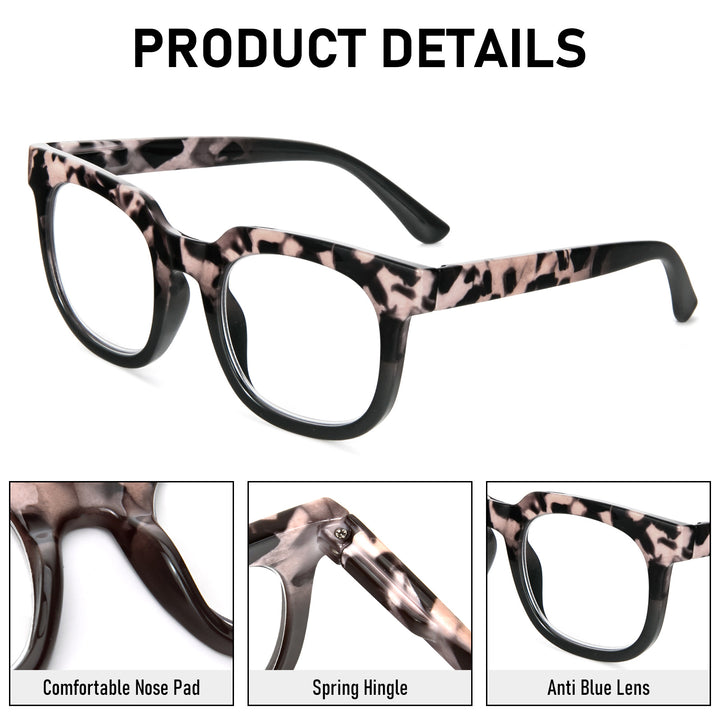 Fashionable Reading Glasses for Women Men Retro Thick Round Frame Eyeglasses