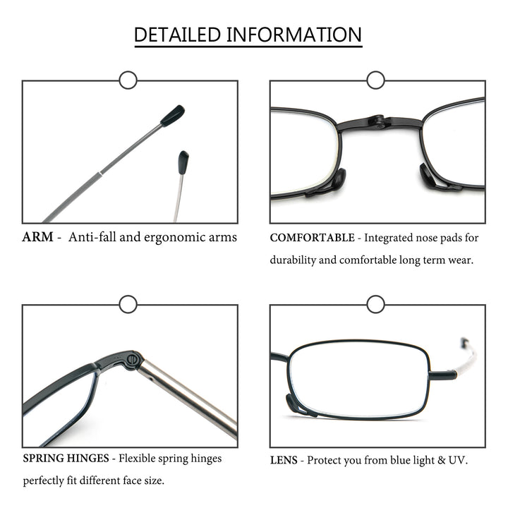 Folding Reading Glasses Blue Light Blocking Computer Metal Glasses