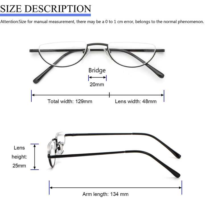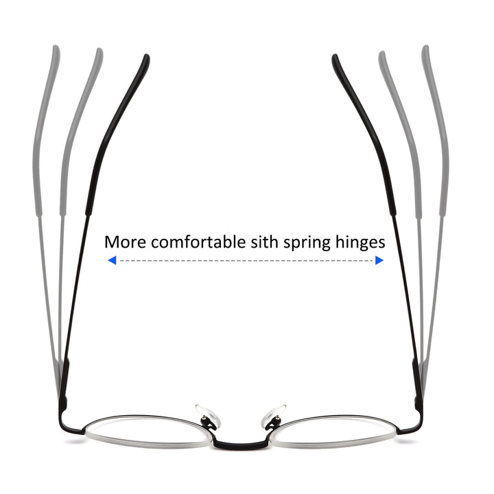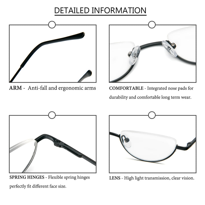 Half Moon Glasses For Women Men Semi Rim Metal Frame Spring Hinge Readers