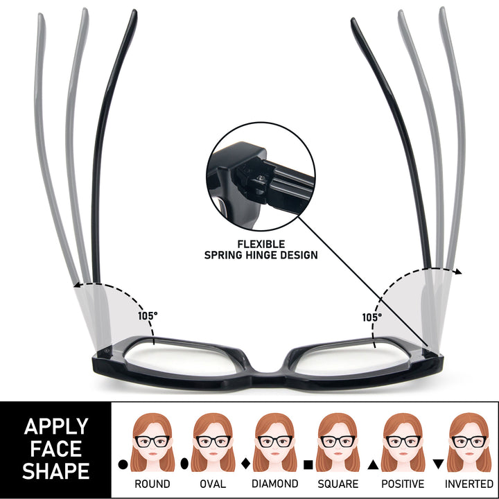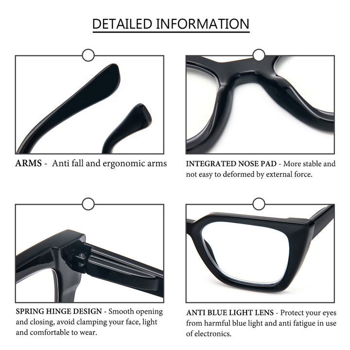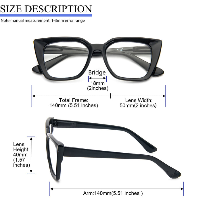 Reading Glasses for Men and Women Cat Eye Full Frame Square Style Reader