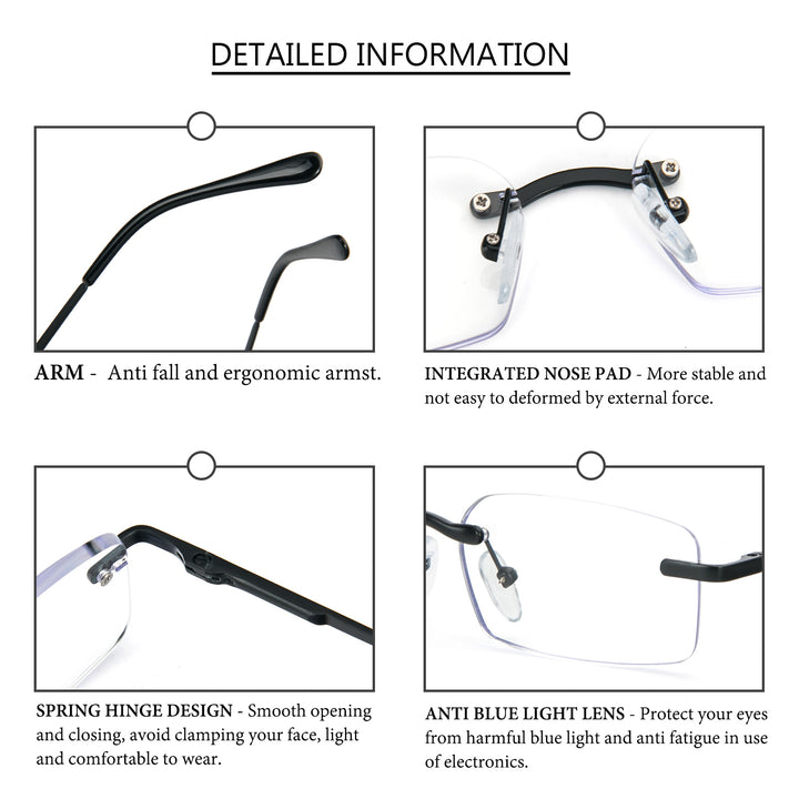 Frameless Reading Glasses For Men Women Lightweight Spring Hinge