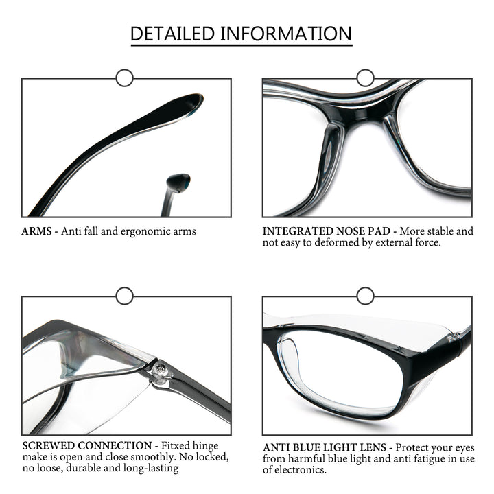 High-Quality Material: The Glasses Are Made of PC Material, Which Is Light and Comfortable. The Transparent Frame Restores the Original Color for Easy Observation. The Temples Are Designed With Radians to Fit the Auricles, Bringing You a More Comfortable Wearing Experience.