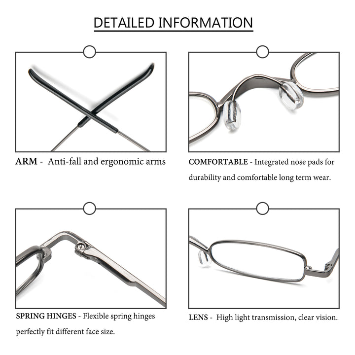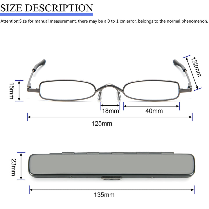 Small Reading Glasses with Pen Clip Metal Case Spring Hinge