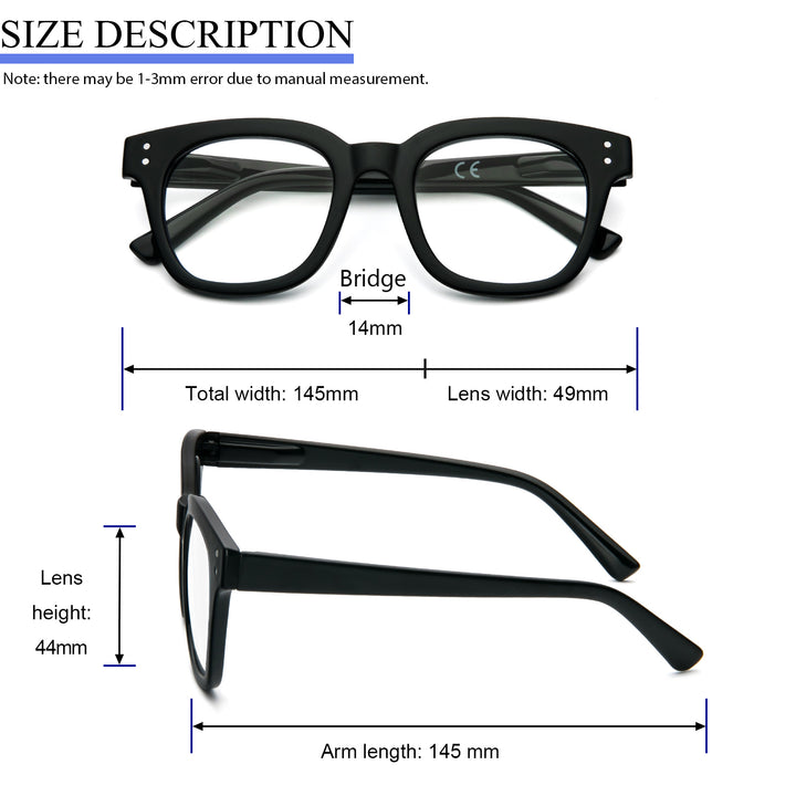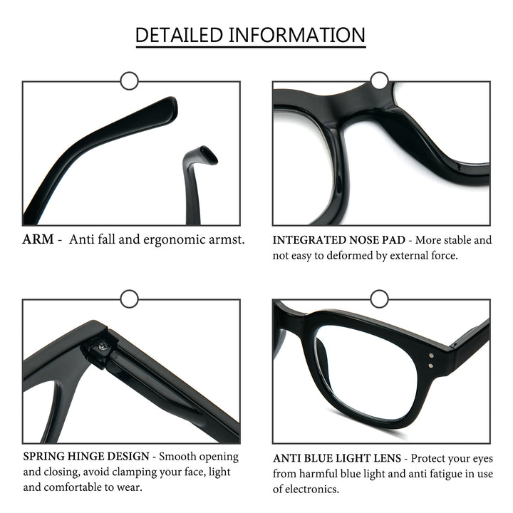 Vintage Reading Glasses Square Style Glasses with Spring Hinge